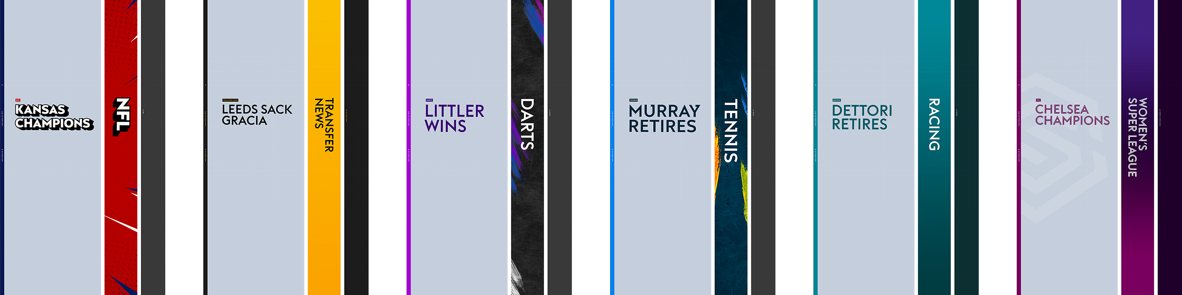 Dynamic headline sequence for Sky Sports News, built in Cinema 4D and After Effects. Each sport features its own bespoke motion treatment, with real-time 3D headline integration via Vizrt. Designed for flexible, daily use - production teams simply select a sport and enter the headline to trigger an automated, animated opener for the top stories of the day.